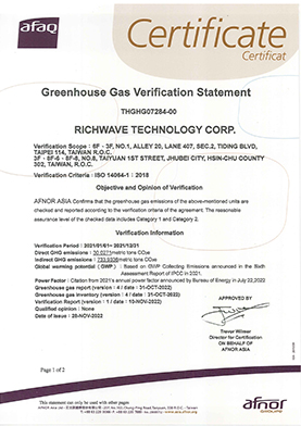 取得法国际标准协会(AFNOR) 国际标准「ISO14064-1:2018温室气体盘查」认证