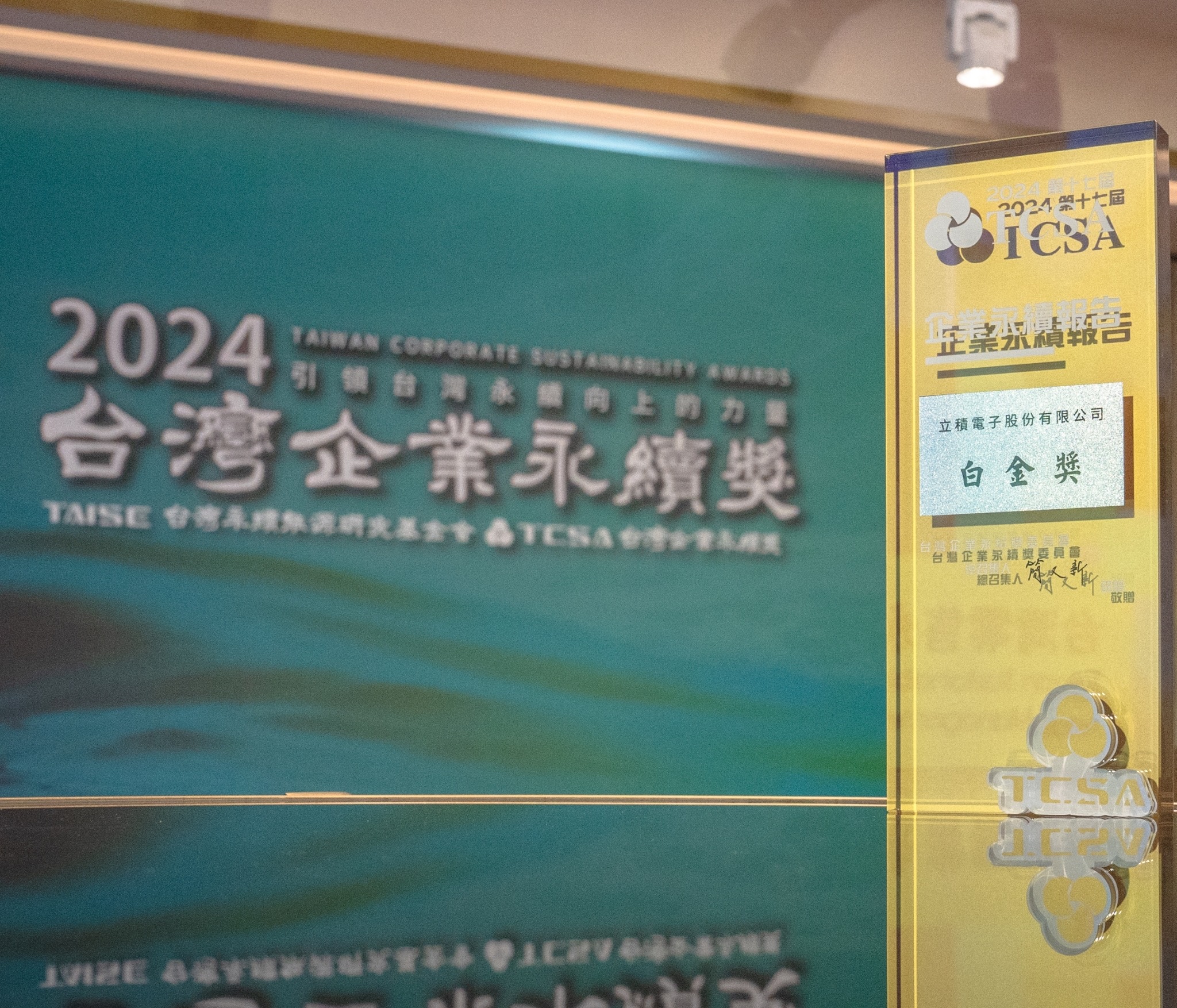 立积电子获颁2023台湾企业永续奖 (TCSA) 电子资讯制造业「最佳永续报告」第二类企业金奖