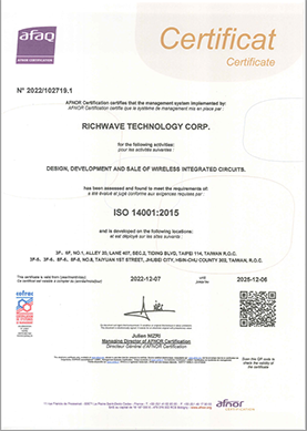 取得法國際標準協會(AFNOR) 國際標準「ISO14001:2015環境管理系統」認證