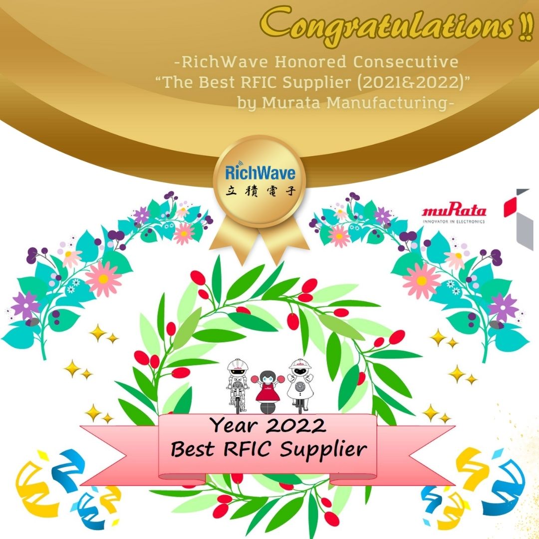 立積電子連續二年榮獲村田製作所(Murata)評選「最佳RFIC供應商」(2021&2022)